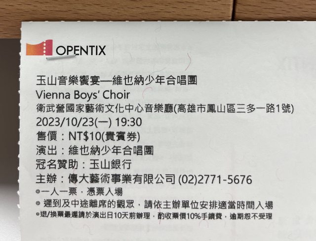 標題[贈送] 10/23維也納少年合唱團票券一張