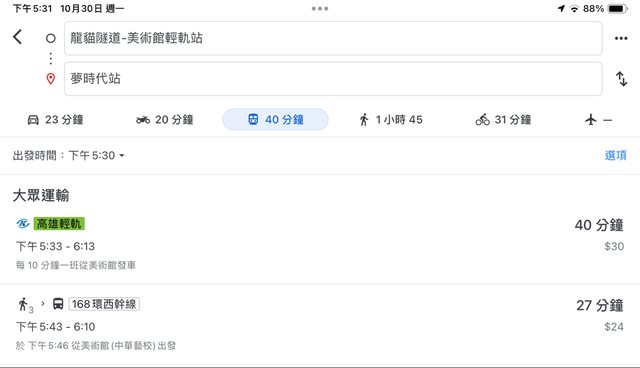 → alkene : 班」時刻「均速」大於輕軌,我騎機車通勤都不會比 10/30 23:28