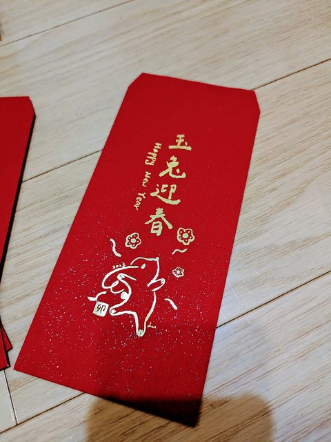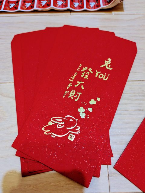 今年沒使用完的燙金兔年紅包袋跟小貼紙多個,全新