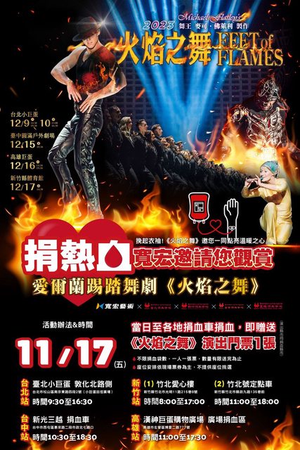 即贈送《火焰之舞》演出門票1張(演出縣市同捐血縣市)