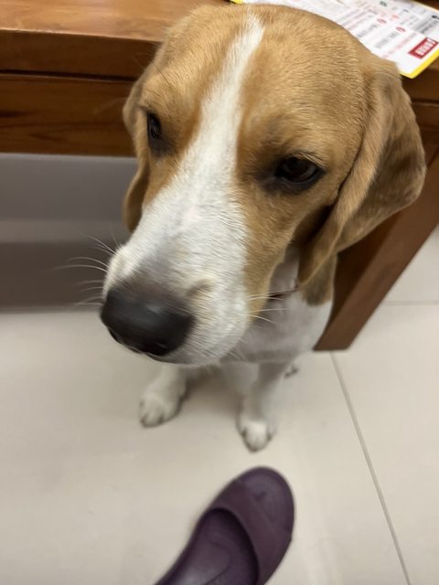 他的顏色比一般米格魯來的淺,很好辨認!