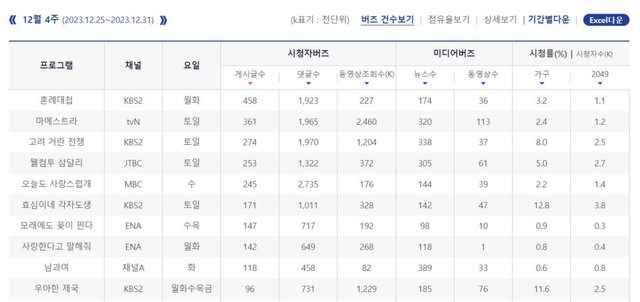 [頭條明星新聞=記者金成熙]根據韓國通信委員會的廣播內容價值資訊分析系統RACOI,tv