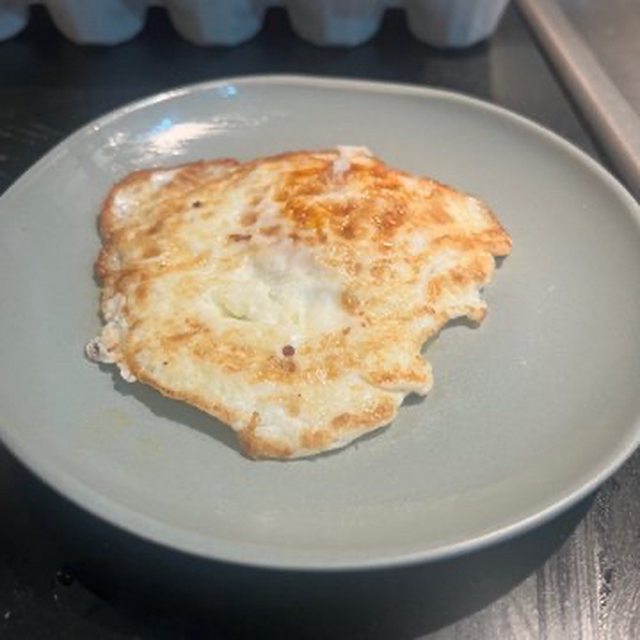 接下來是邊邊有點焦焦的2號蛋 由李政縣所煎