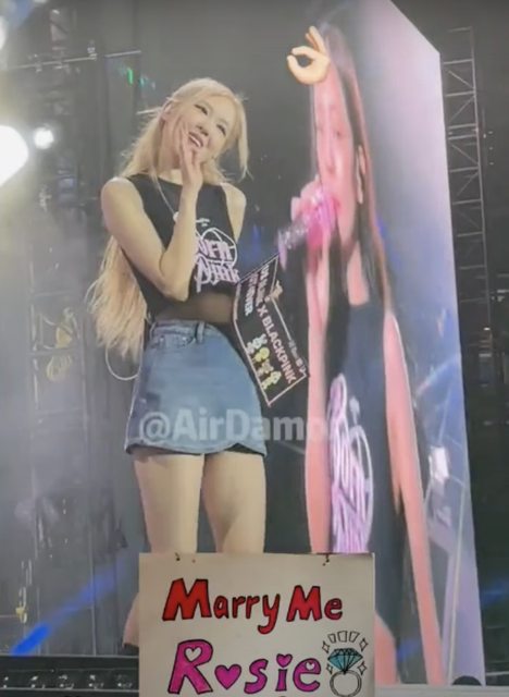 ,有名粉絲舉起了「Marry Me Rosé」的板子,而Rosé看到後比了一個ok的手勢回應粉