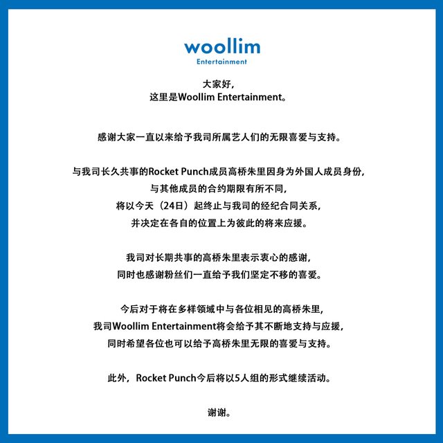此外,Rocket Punch今後將以5人組的形式繼續活動。