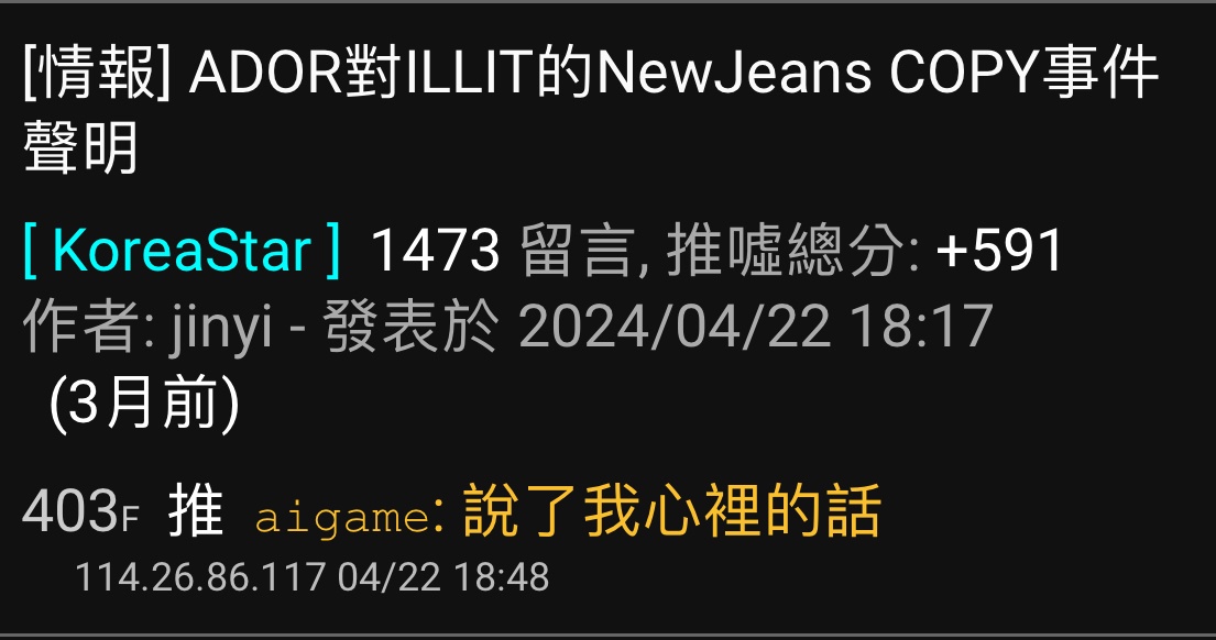 → goingtoofar: 拿這篇說沒抄襲的跟拿 ador聲明說沒 61.231.25.219 07/23 21:46