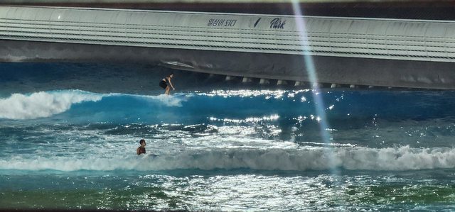 雖然下雨,但晚上衝浪十分浪漫,十分推薦有一點程度的衝浪愛好者(因為人工浪比較快