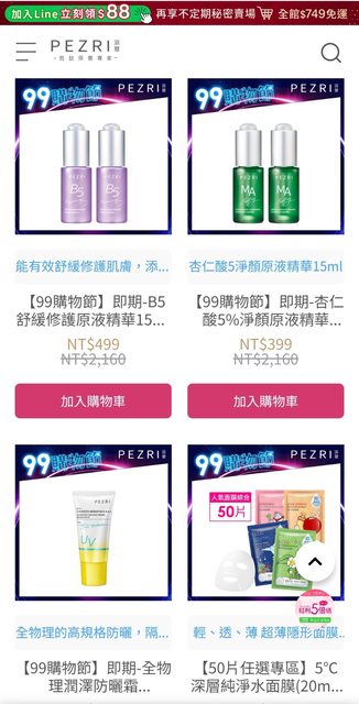 標題[情報] 派翠99購物節 B5原液1+1 $499&面膜13元