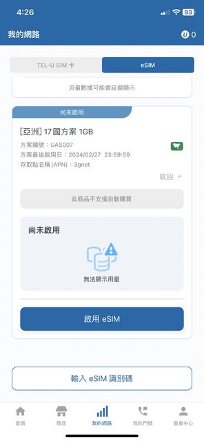 最近在找出國的ESIM網卡發現這間,看到他們有提供免費試用的活動,有上網查詢過他們 家訊號如何的分享文,都說訊號不錯 不過這次去日本我是打算先申請1G試用,確定沒問題後再直接在他們的APP上買要的流量 這邊分享目前的1G試用活動資訊 頁面:https://reurl.cc/N05Zmp 序號:TELUESIM https://i.imgur.com/qit1Z31.jpg