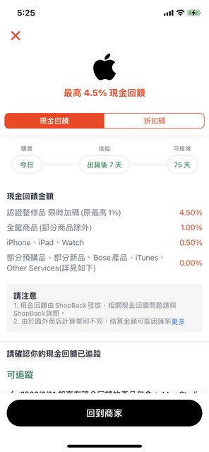 標題Re: [情報] shopback 9/7 Apple 整修品4.5%