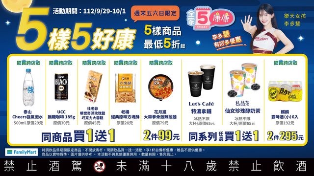 【未滿十八歲禁止飲酒】 【飲酒過量,害人害己】 【酒後不開車,安全有保障】 另外康康5也出來了順便給一下 【活動名稱】:全家康康5,有多慧就有好多優惠 【活動時間】:2023/09/29~2023/10/01 https://i.imgur.com/Gr8QmgD.jpg