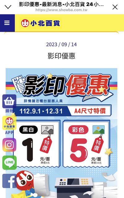 小北黑白影印一面1元,優惠到年底. 彩色優惠5元. 很多Pay可以用,要解任務也方便. https://i.imgur.com/bdU8E5Z.png