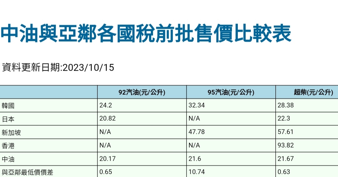 happyday890: 包在油價裡頭,台灣分開抽再跟你說 1.163.39.36 10/15 20:05
