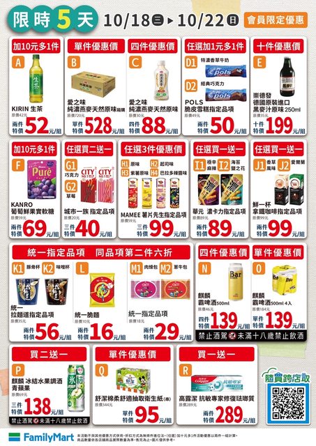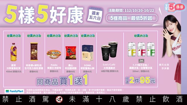【活動名稱】:全家康康5,有多慧就有好多優惠 【便利商店/廠商名稱】:全家 【活動時間】:2023/10/20~2023/10/22 【活動內容】: https://i.imgur.com/wAINUFg.jpg