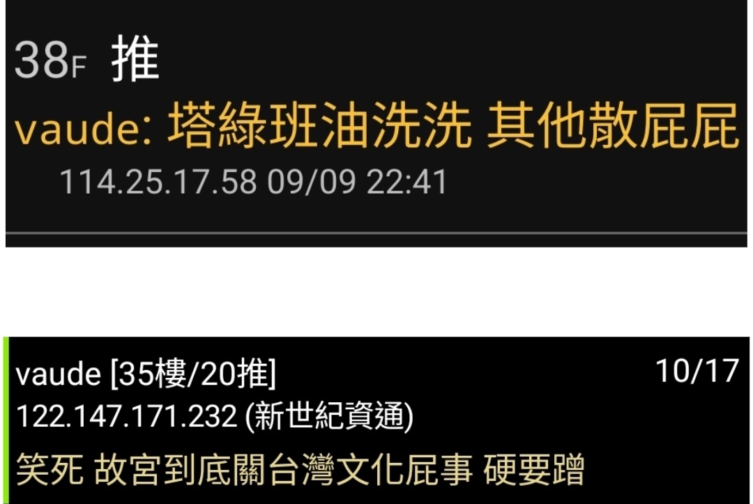 keney963817: 真的故宮關台灣文化什麼事!孔廟也是 223.137.83.79 10/17 12:07