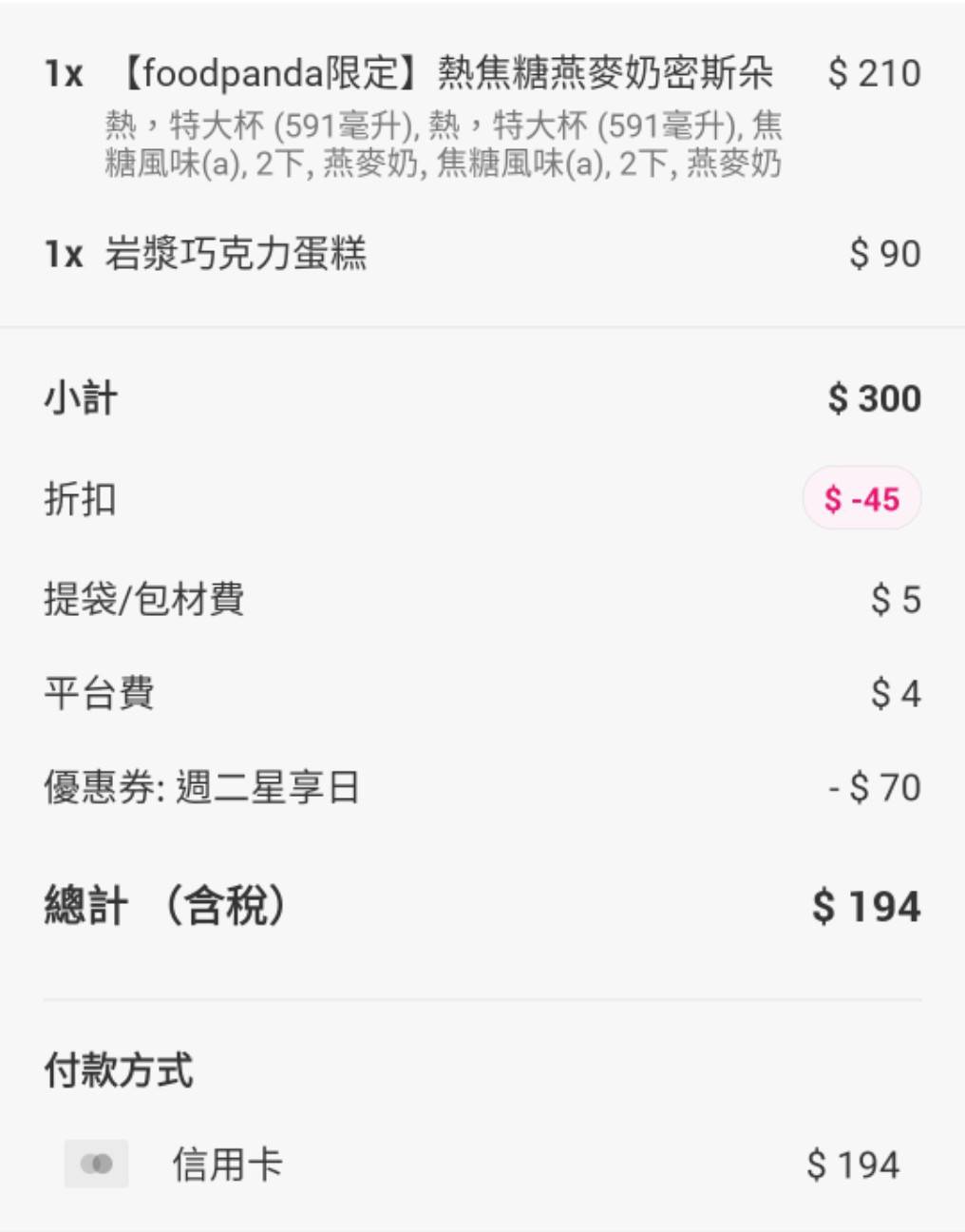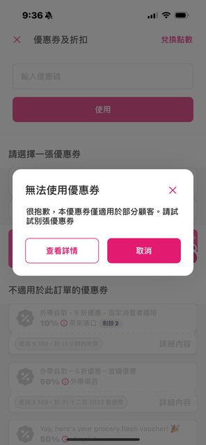 ※ 引述《ym1202 (斷絃風箏)》之銘言: : ※ 引述《asyan ( )》之銘言: : : 熊貓 星巴克 特大杯冰拿堤 二杯150元 : : 另有折扣碼折70元:週二星享日 : : 如果有PRO湊到179免運蠻划算 : : 滿300還有85折 : : 買二組四杯194元 : : 剛點了二杯特大拿堤+軟法麵包 : : 原價350元 折完138元 : 今天又有一模一樣的活動唷! : 大家可以好好把握~ 今天是活動最後一週 但早上我要使用卻被拒絕了 有人試過可以嗎? https://i.imgur.com/BGU7ybX.jpg