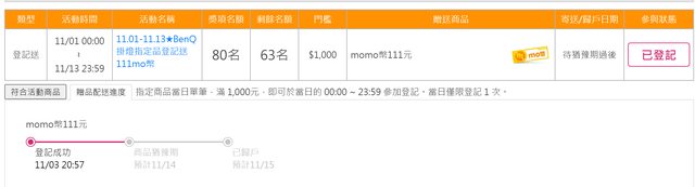 → snownow: 剛剛看登記111的名額沒了,我81折歸戶但 114.137.60.66 11/04 16:21