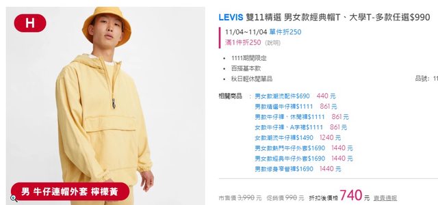 標題[情報] MOMO LEVIS 活動區 1件折250
