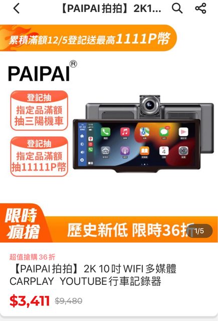 最近雙11 發現很多品牌折扣很深, 之前一直想說解決一下前幾年買的行車記錄器畫質不好的問題 剛好在PCHOME這台carplay 又是紀錄器 又是導航 10吋 就訂下去了~~ https://i.imgur.com/UqapdQm.jpg