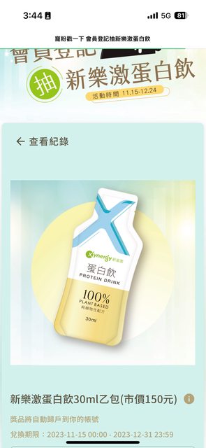 標題[情報] 新東陽會員登記抽新樂激蛋白飲
