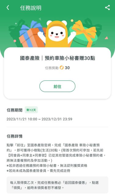 標題[情報] 國泰優惠 預約車險小秘書領30點