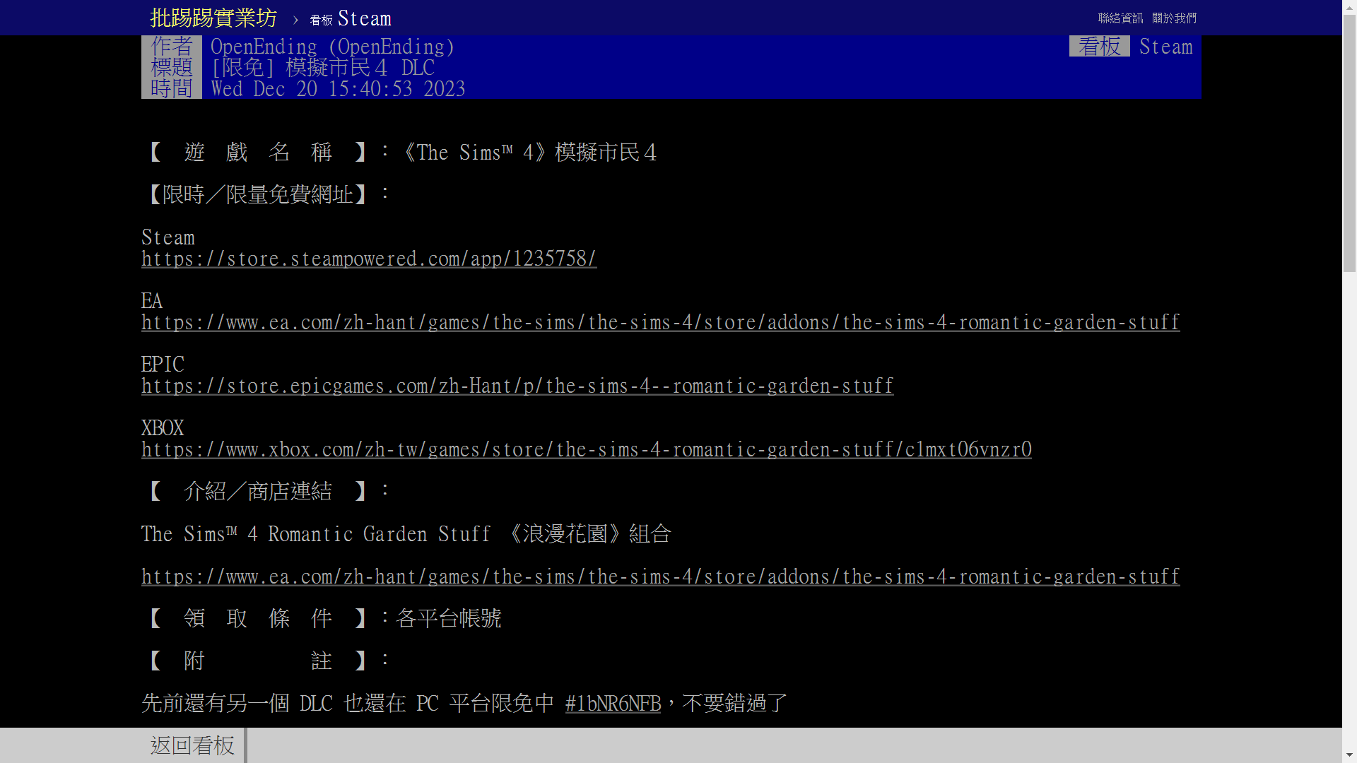 推 Krix: 沒人在意你玩不玩 steam都送糞game跟dlc 1.171.148.230 12/23 09:29