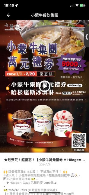 如果真的會買零售的 可以考慮買小蒙牛餐券 9000元會有10000元的餐券 https://i.imgur.com/Zlp56QF.jpg