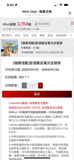 標題[情報] 昇恆昌iRich點數抽澎澄飯店薑餅房