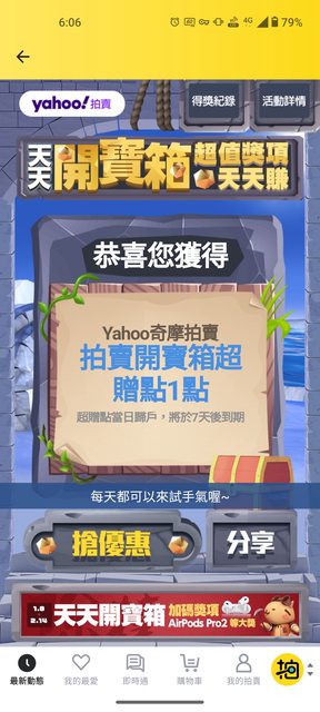 每天可以切換到yahoo拍賣去點寶箱開超贈點 ----- Sent from JPTT on my Asus ASUS_AI2202. -- ※ 發信站: 批踢踢實業坊(web-ptt.tw), 來自: 42.72.85.181 (臺灣) ※ 文章網址: https://web-ptt.tw/Lifeismoney/M.1705399267.A.B4E