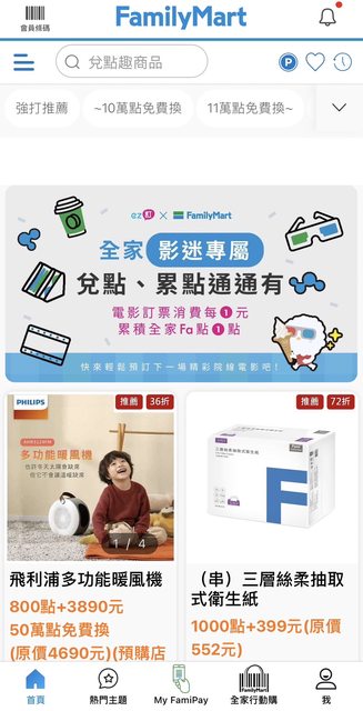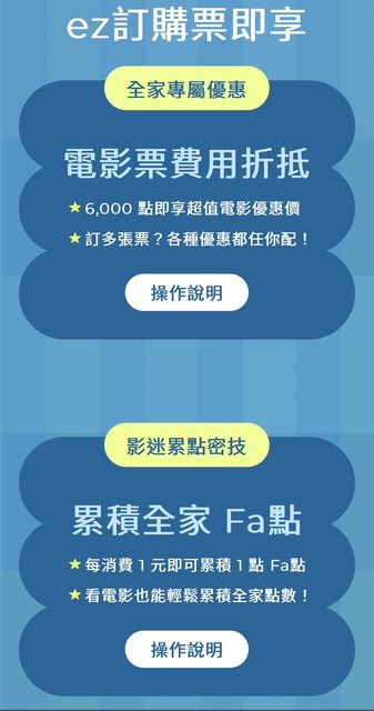 2.ez訂APP綁訂全家會員,訂電影票消費1元集1點