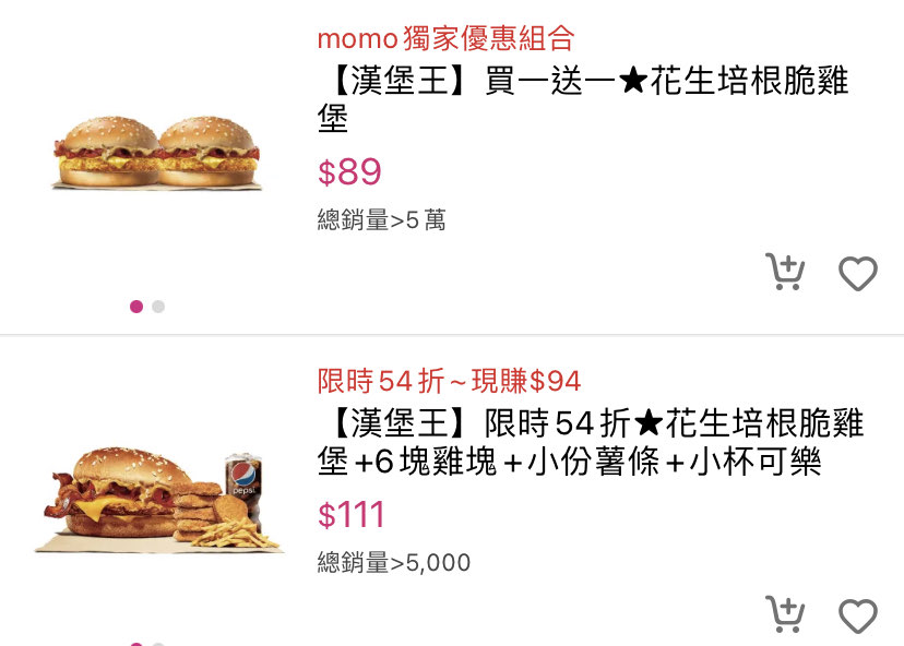 ▲只要購買安格斯系列套餐任1套就可多吃花生培根脆雞堡1顆。 漢堡王即日起至1月26日連3天大放送「花生培根脆雞堡」,期間只要於門市購買「安格斯系 列套餐」任1套,指定套餐包括勁濃安格斯牛肉堡套餐/安格斯厚切牛肉堡套餐/花生安格 斯牛肉堡套餐,套餐附餐為小份薯條與中杯可樂,就可免費多吃花生培根脆雞堡1顆,且活 動可累贈,買愈多送愈多,官網則選定指定套餐輸入優惠碼「BKBONUS」同享脆雞堡免費吃 優惠,各店數量有限、售完為止,提醒兒童樂園、機場及科技廠內店不適用此活動。 另,麥當勞即日起至1月28日也於全球版APP祭出「5大優惠券」,包括「買超值全餐享5元漢 堡加購價」、「勁辣雞腿堡現折10元」、「49元午茶優惠組(蘋果派+蛋捲冰淇淋)」、「7 9元精選優惠組(麥香雞+小杯玉米湯)」及「單筆消費滿200現折20元」等,把握機會吃一 波。 -- ※ 發信站: 批踢踢實業坊(web-ptt.tw), 來自: 42.73.102.146 (臺灣) ※ 文章網址: https://web-ptt.tw/Lifeismoney/M.1706064981.A.ABB