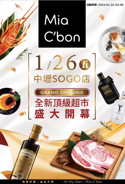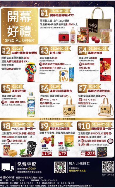 店家:Mia C’bon 中壢sogo店 優惠:開幕好禮 時間:1/26-2/8 https://i.imgur.com/AxUn0H9.jpeg