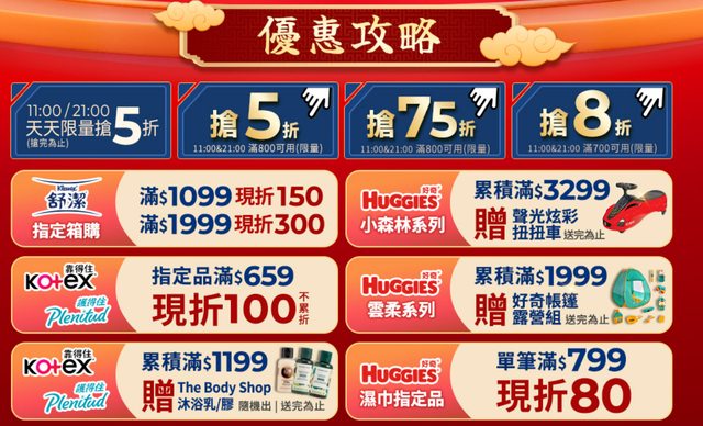 今天開始到2/5每天11點和21點 可以搶五折/七五折/八折券