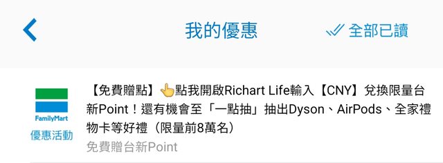 推 ASAKU581: 開全家APP沒這消息,感謝1樓 6樓分享 122.118.56.164 02/05 18:59