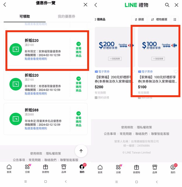 【活動名稱】:2/9 Line 禮物 家樂福/肯德基 20元優惠券 【廠商名稱】:Line 禮物 【活動時間】:2024/2/9~2024/2/10 【活動內容】 https://i.imgur.com/MtvrDl5.jpg
