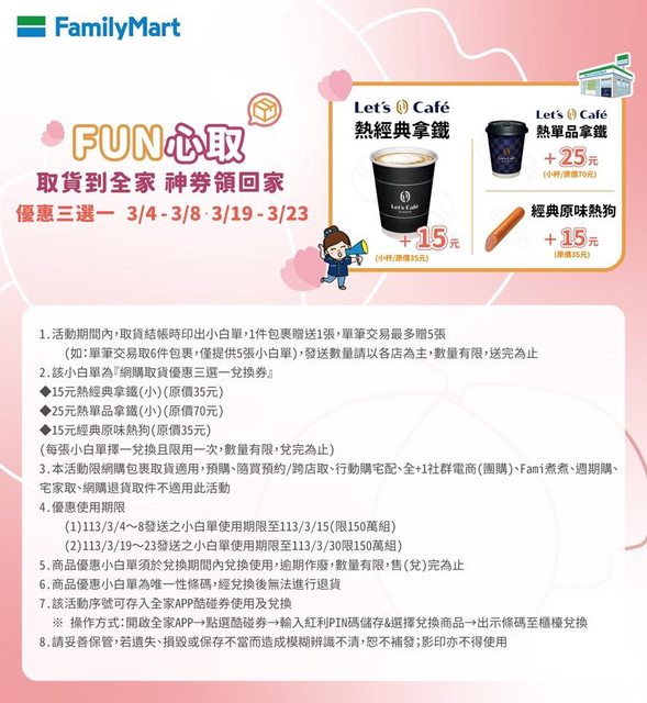 推 Behave: 感謝分享,3月不用全家取貨了 118.170.95.70 03/01 20:25