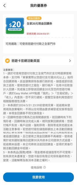 標題[情報] 悠遊付x全家20元現金回饋券 分眾