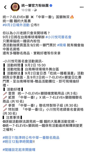 憑活動抽獎頁面及9/2統一獅門票於 #現場 就有機會抽中簽名資格