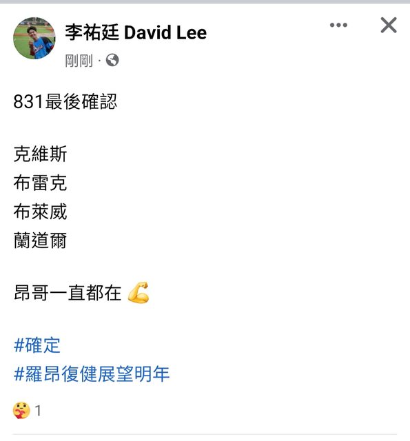 推 allyp7985: 羅大哥明年見!好好休養!08/31 15:01