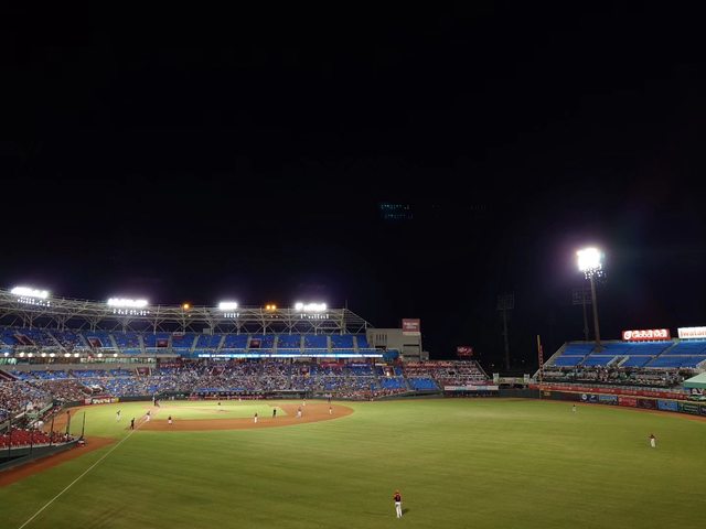 九局上時 對面的球迷傳來歡呼聲