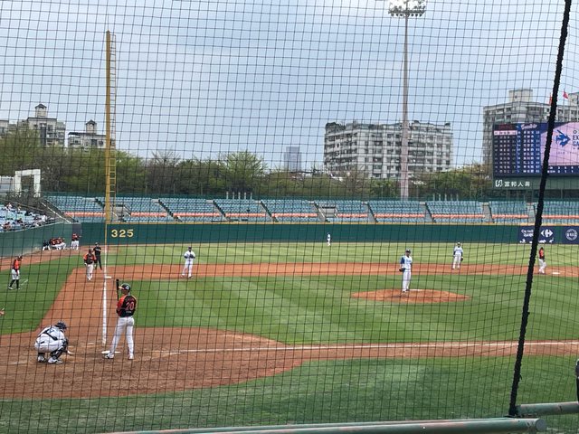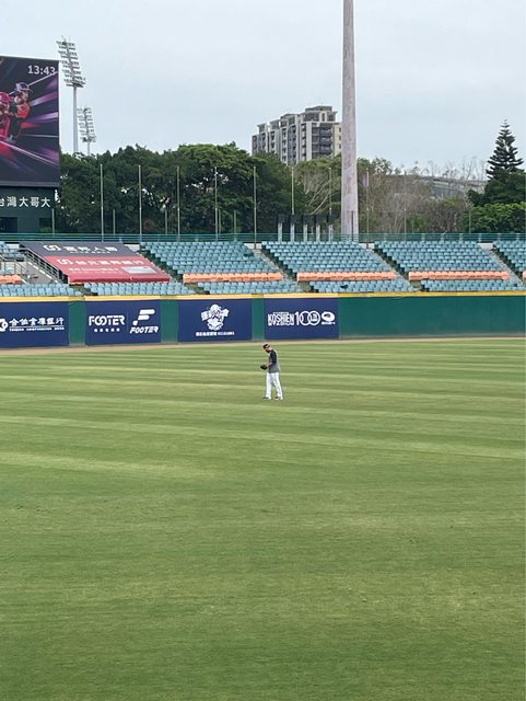 原本想坐三壘 但考慮到女孩們沒來加上我的球衣還在路上所以忍痛(?)坐一壘