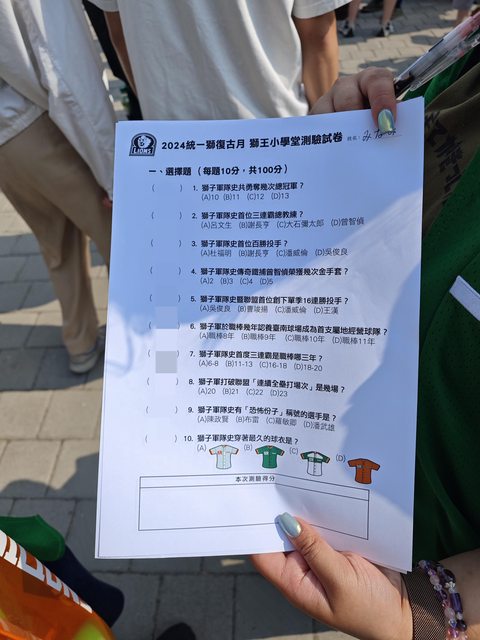 球團用心準備的測驗題目 答案就不公布了