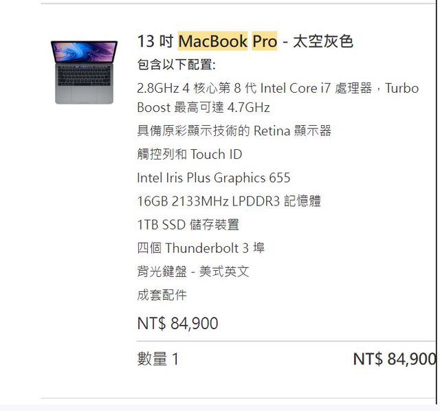 2.8GHz 4 核心第 8 代 Intel Core i7 處理器,Turbo Boost 最高可達 4.7GHz