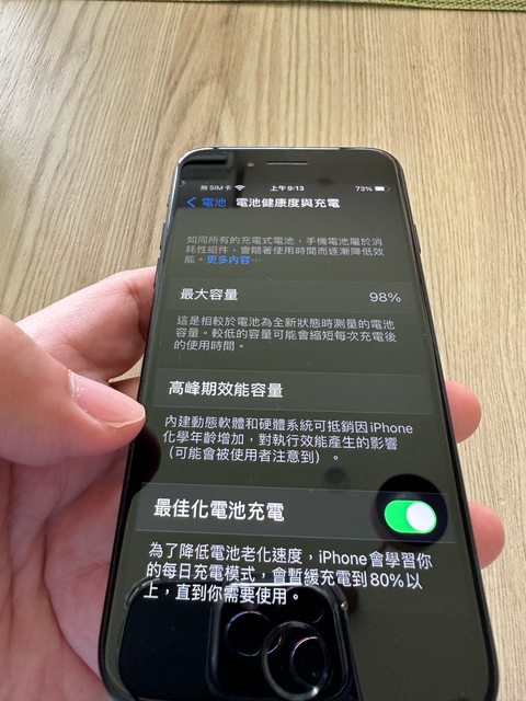 目前電池健康度98%,功能一切正常