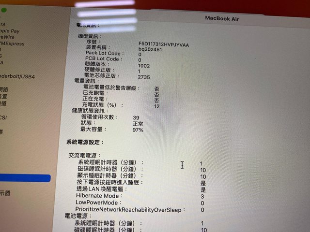 [型號] A2337 Macbook air M1 8/512G