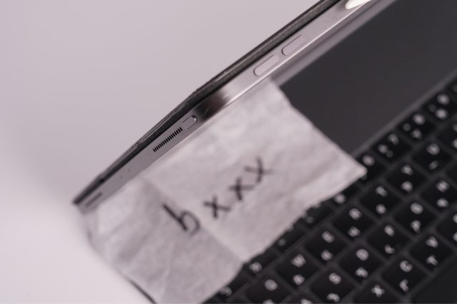 (IPAD邊角處有一處刮痕,筆中心處一小點磕傷,鍵盤邊角脫皮)