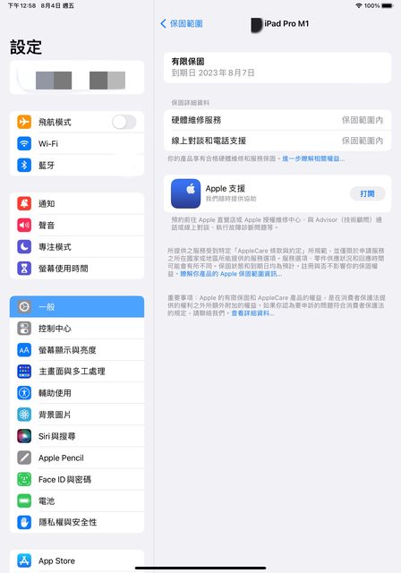 [型號] iPad Pro 11 M1 128GB WIFI 太空灰