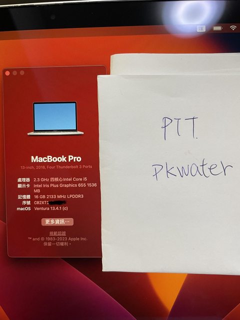 標題[販售] 雙北 2018 MacBook Pro 13 16/512GB