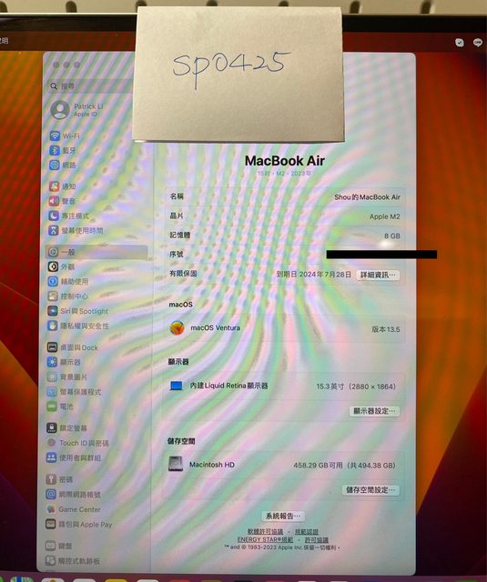 標題[販售] 雙北 Macbook Air M2 15寸 8/512 星光色