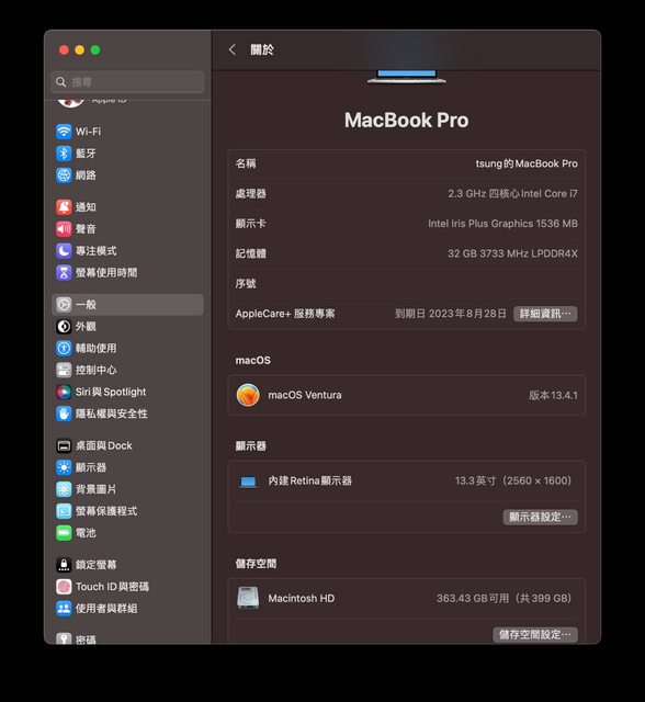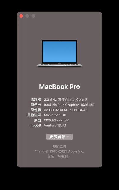 標題[販售] (已售出)雙北 macbook pro 13” 2020 i7 32/512 A